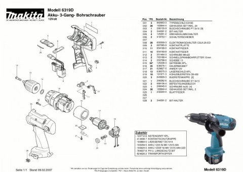 Ανταλλακτικά επαναφορτιζόμενου δραπανοκατσάβιδου MAKITA 6319D