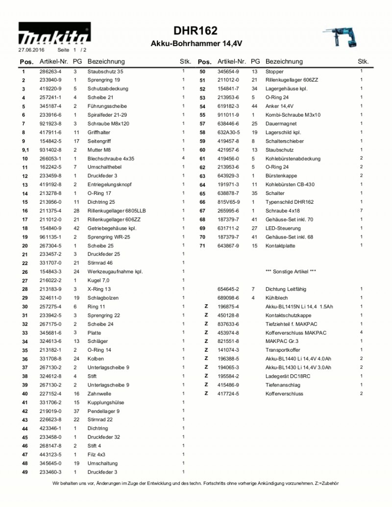 Ανταλλακτικά επαναφορτιζόμενου πιστολέτου MAKITA DHR162