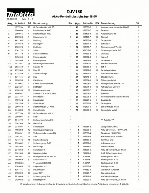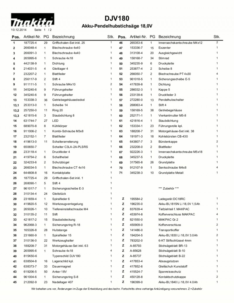 Ανταλλακτικά επαναφορτιζόμενης σέγας MAKITA DJV180