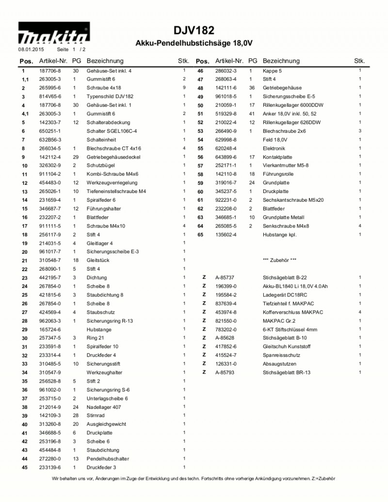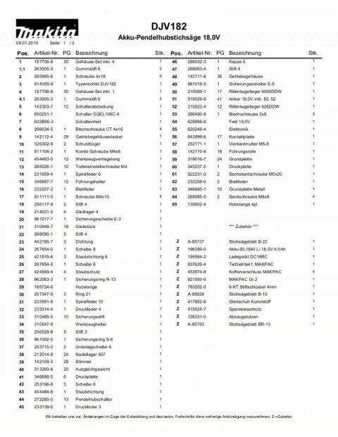 Ανταλλακτικά επαναφορτιζόμενης σέγας MAKITA DJV182