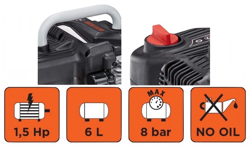Black & Decker BXCM0051E BD195/6-NK Αεροσυμπιεστής 6 λιτρών 8 bar