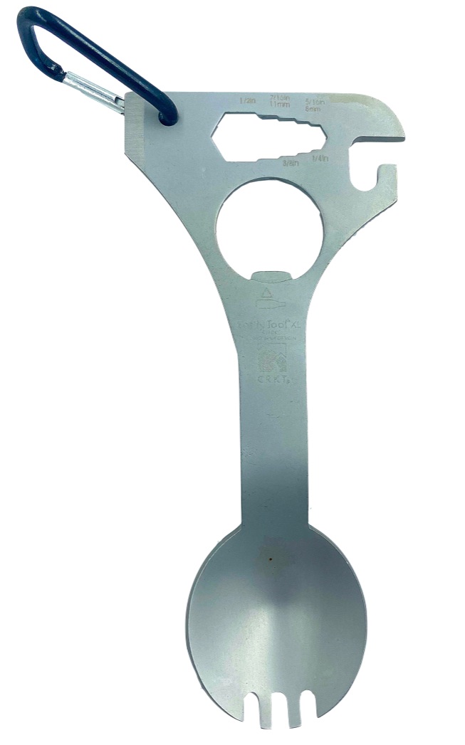 - Χρησιμεύει ώς κουτάλι , πηρούνι , ανοιχτηρι μπουκαλιών , ανοιχτηρι κονσερβων , κατσαβίδι , μινι λοσταράκι , Γερμανικό κλειδί σε 1/2" , 7/16" , 3/8" , 5/16" . 1/4" , 11 χιλ και 8 χιλ.