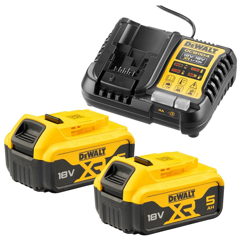 DeWalt DCB1104P2 Φορτιστής 10.8V-18V LiIon Λιθίου Συρταρωτών μαζι με 2 μπαταρίες 18V 5.0Ah DCB184-XJ