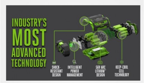 - Η μπαταρία EGO POWER+ 56 Volt 2.5Ah χρησιμοποιεί κορυφαία τεχνολογία ARC Lithium για να προσφέρει Power Beyond Belief ™ και είναι συμβατή με όλο τον εξωτερικό εξοπλισμό ισχύος EGO.