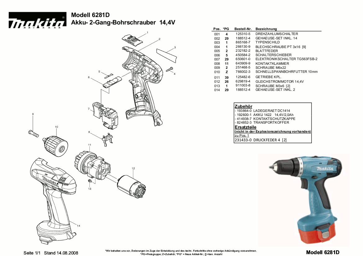 Ανταλλακτικά επαναφορτιζόμενου δραπανοκατσάβιδου MAKITA 6281D