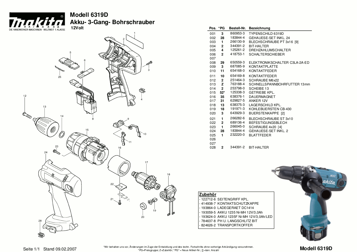 Ανταλλακτικά επαναφορτιζόμενου δραπανοκατσάβιδου MAKITA 6319D