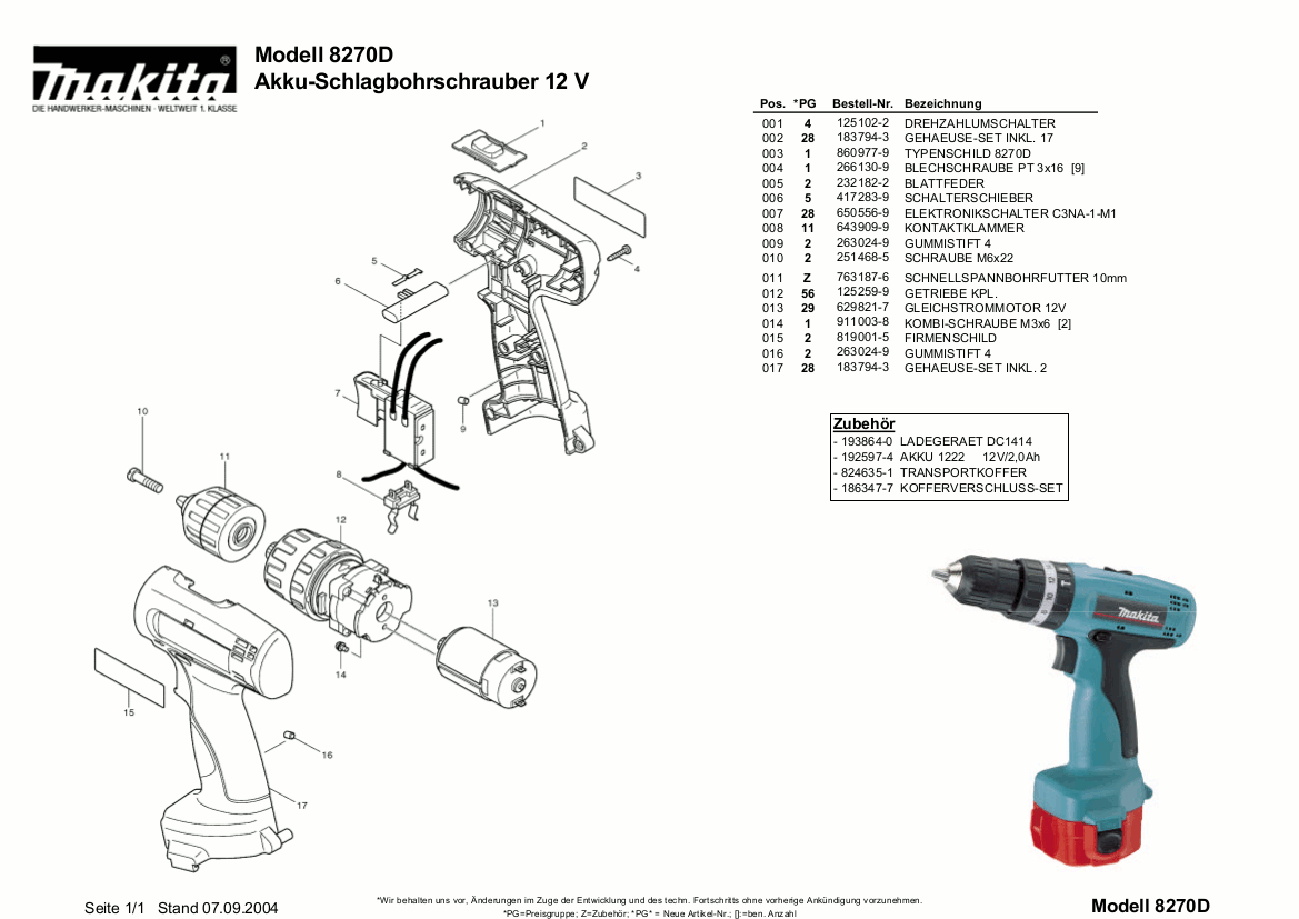 Ανταλλακτικά επαναφορτιζόμενου δραπανοκατσάβιδου MAKITA 8270D