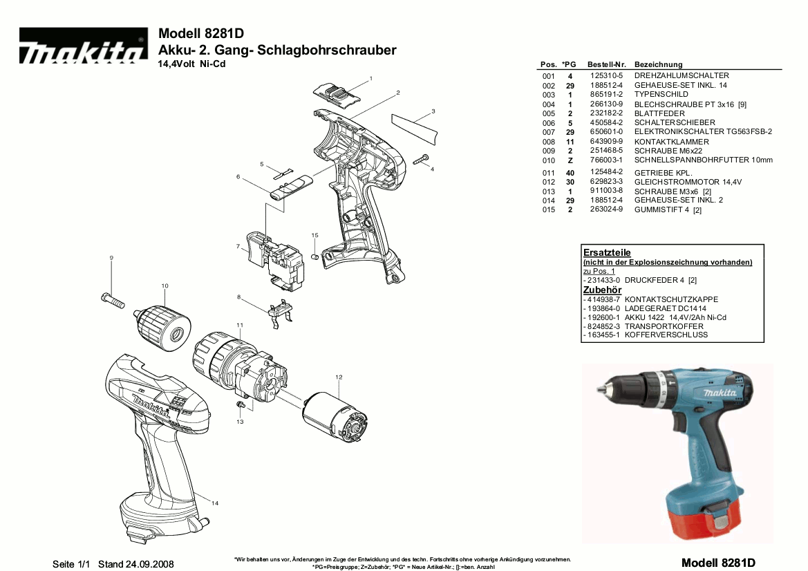 Ανταλλακτικά επαναφορτιζόμενου δραπανοκατσάβιδου MAKITA 8281D