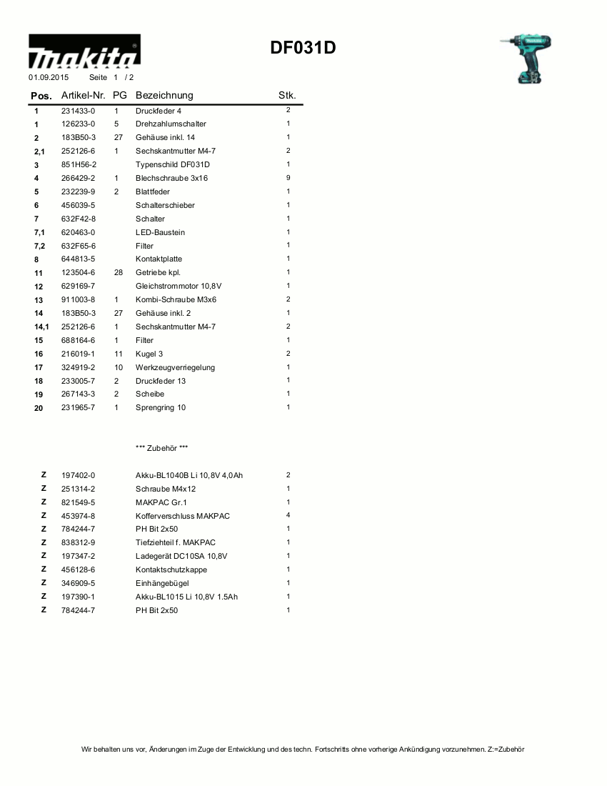 Ανταλλακτικά επαναφορτιζόμενου δραπανοκατσάβιδου MAKITA DF031D
