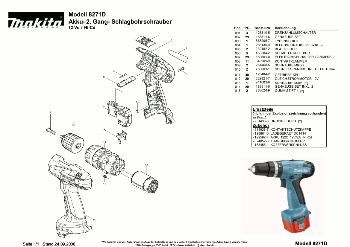 Ανταλλακτικά επαναφορτιζόμενου κρουστικού δράπανου MAKITA 8271D