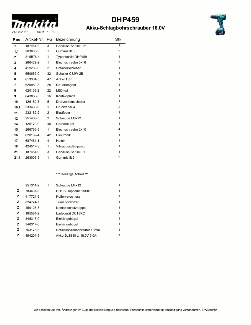 Ανταλλακτικά επαναφορτιζόμενου κρουστικού δράπανου MAKITA DHP459