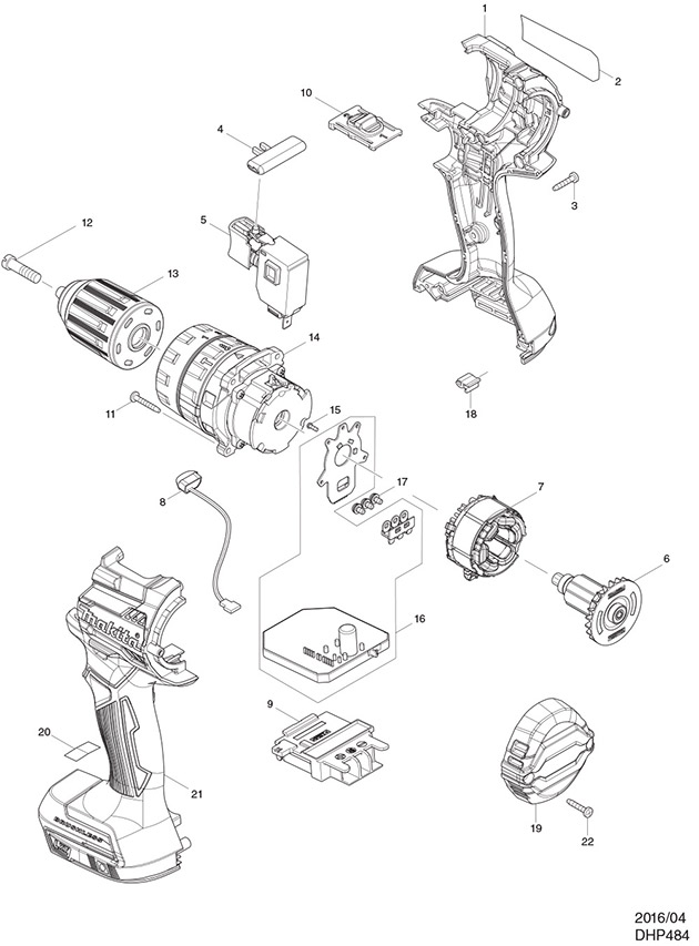 Ανταλλακτικά επαναφορτιζόμενου κρουστικού δράπανου MAKITA DHP484