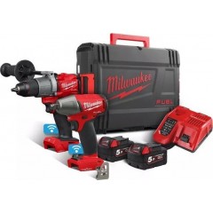 Σετ Milwaukee M18 FPP2B-502X 18V Κρουστικό Δραπανοκατσάβιδο M18 FPD, Μπουλουνόκλειδο 1/2'' M18 FIWF12 με 2 μπαταρίες λιθίου σε βαλίτσα 4933459784