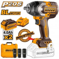 Brushless Μπουλονόκλειδο Μπαταρίας 20V 2x4Ah με Υποδοχή 1/2" CIWLI2085 Ingco