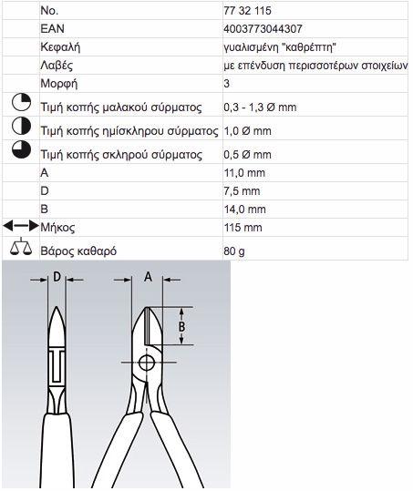 Knipex 77 32 115 ESD Μικρο Κόφτης Ηλεκτρονικών Μυτερός