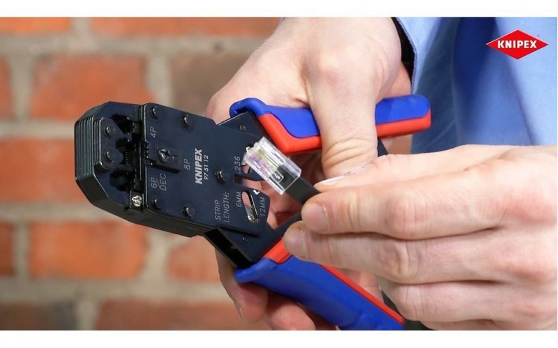 - Για πρεσαρίσματα των 4, 6 και 8 πολικών δυτικών βυσμάτων τύπου RJ 10 (πλάτος 7,65 mm), τύπου RJ 11/12 (πλάτος 9,65 mm) και τύπου RJ 45 (πλάτος 11,68 mm)