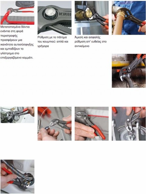 - κλειδώνει μόνη της πάνω σε σωλήνες ή παξιμάδια: το αντικείμενο δεν γλιστρά ενώ απαιτείται μικρότερη προσπάθεια του χειριστή