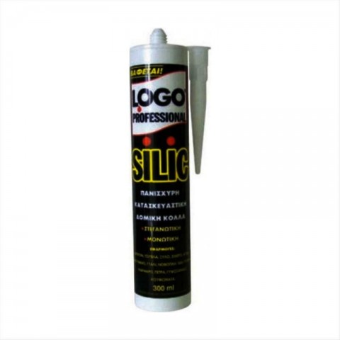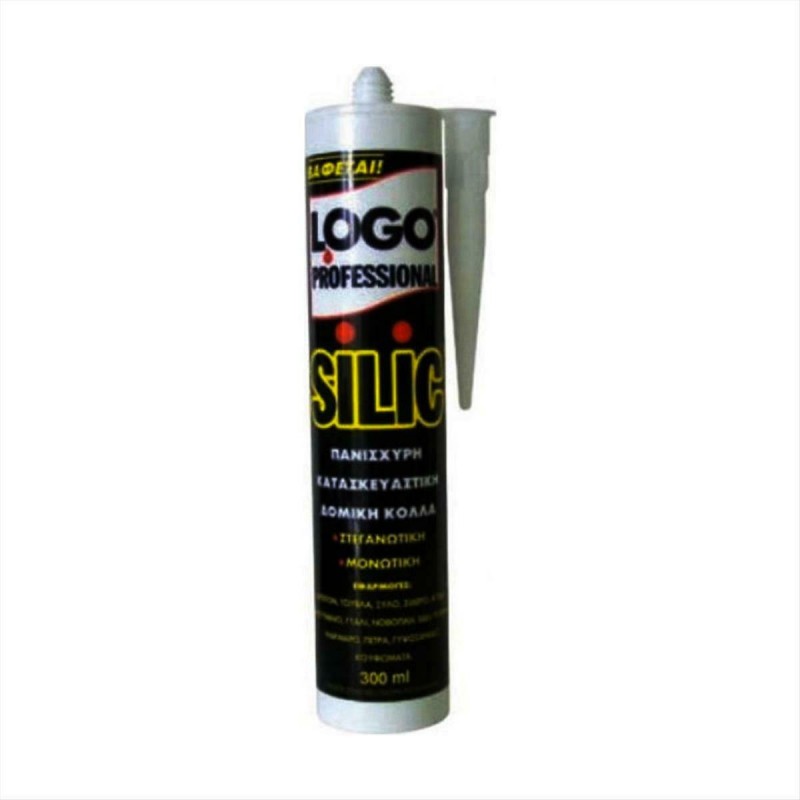 - Πανίσχυρη κατασκευαστική δομική κόλλα Logo Silic Professional σε μορφή πάστας (δεν τρέχει).