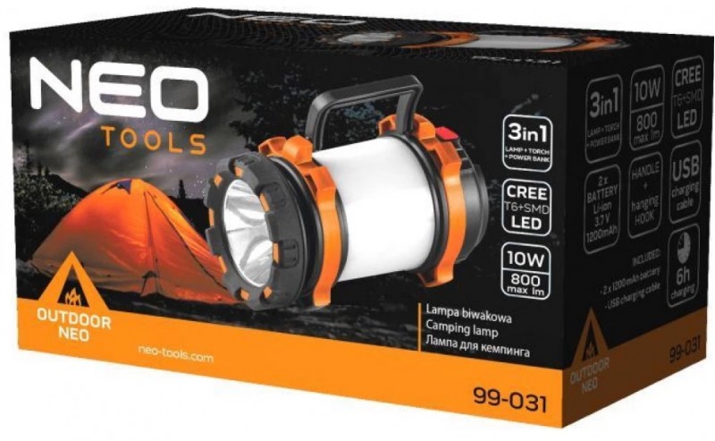 NEO TOOLS 99-031 Φακός Κάμπινγκ 3 σε 1 USB 800 Lumens