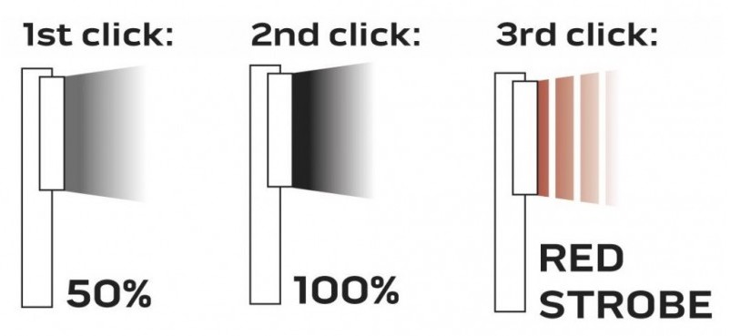 - 3 λειτουργίες φωτός 100%, 50%, κόκκινο στροβοσκοπικό φως