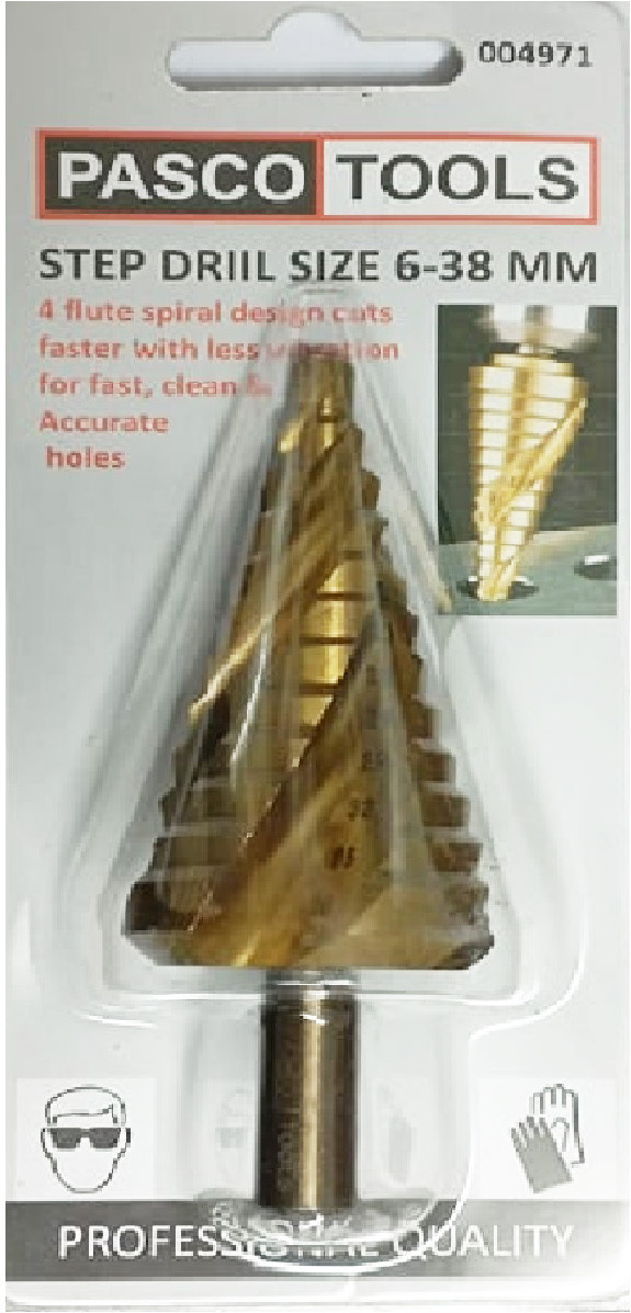 - Με βαθμίδες για τρύπες σε 6 , 9 , 13 , 16 , 19 , 21 , 23 , 26 , 29 , 32 , 35 , 38 χιλιοστών