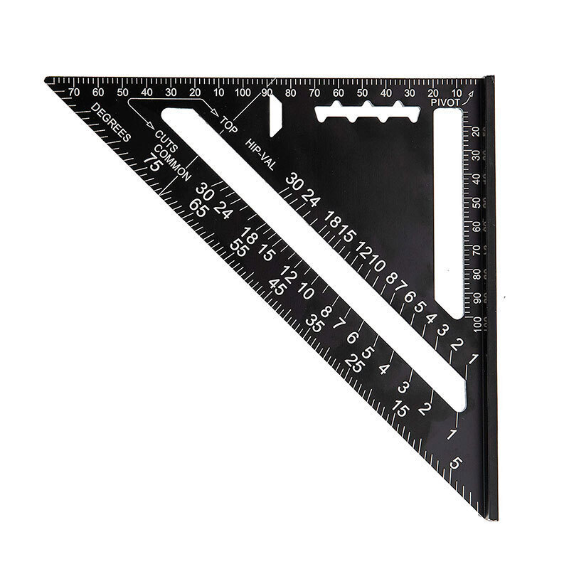 - Υλικό βαμμένης επιφάνειας από κράμα αλουμινίου, μόνιμα εφαρμοζόμενη βαθμονόμηση χιλιοστών και ιντσών και εξειδικευμένες γωνίες για μετρήσεις που πραγματοποιούνται σε ξυλουργικές εργασίες και εργασίες στέγης.