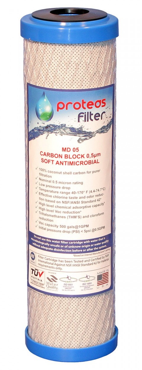 Proteas Filter EW-10-333 Φίλτρο Πρωτέας ενεργού άνθρακα από κέλυφος καρύδας MD05 10''-0,5μm 0320107