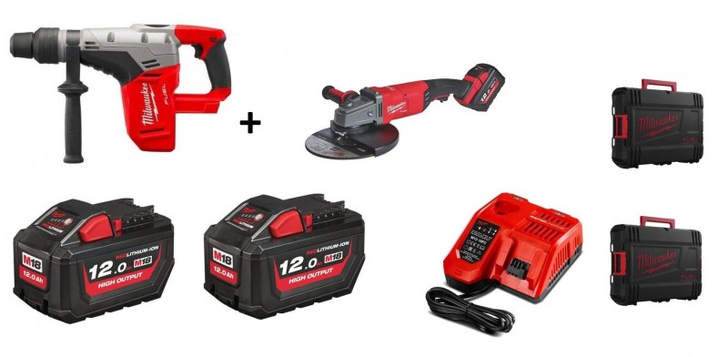Σετ εργαλειων μπαταρίας Milwaukee M18 FHPP2A-122C FLAG230XPDB γωνιακός λειαντήρας 230mm και M18 CHM και δύο μπαταριες M18 HB12 12.0Ah High Output , ταχυφορτιστής M12-18FC και 2 βαλιτσες μεταφοράς [4933464902]