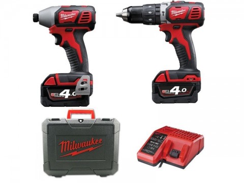 Σετ Milwaukee M18 BPP2C-402C 18V [ Κρουστικό Δραπανοκατσάβιδο M18 BPD, Παλμικό κατσαβίδι M18 BID με 2 μπαταρίες λιθίου [2 - 4.0 Ah] σε βαλίτσα