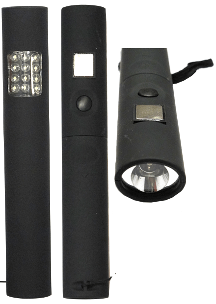 - Φακός για εργασίες συνεργείου με 12 LED που φωτίζουνε οταν κρατάτε τον φακό ορθιο + 1 LED στην μυτη