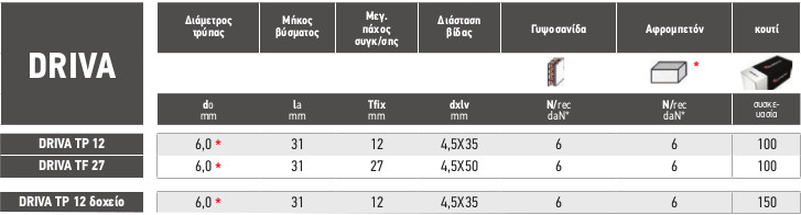 Βύσματα DRIVA για Γυψοσανίδα Αυτοδιάτρητα